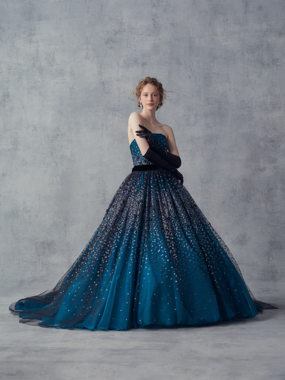 ANTEPRIMAファン待望のフィオーリモチーフ柄ドレス ANTEPRIMAフィオーリモチーフ柄のグリッターを深いブラックのチュールにかけ、ベロアと合わせた深いカラーの迫力ある一着。ベロアのベルトとリボンは取り外せるので、自分らしくアレンジして個性ある着こなしを。
