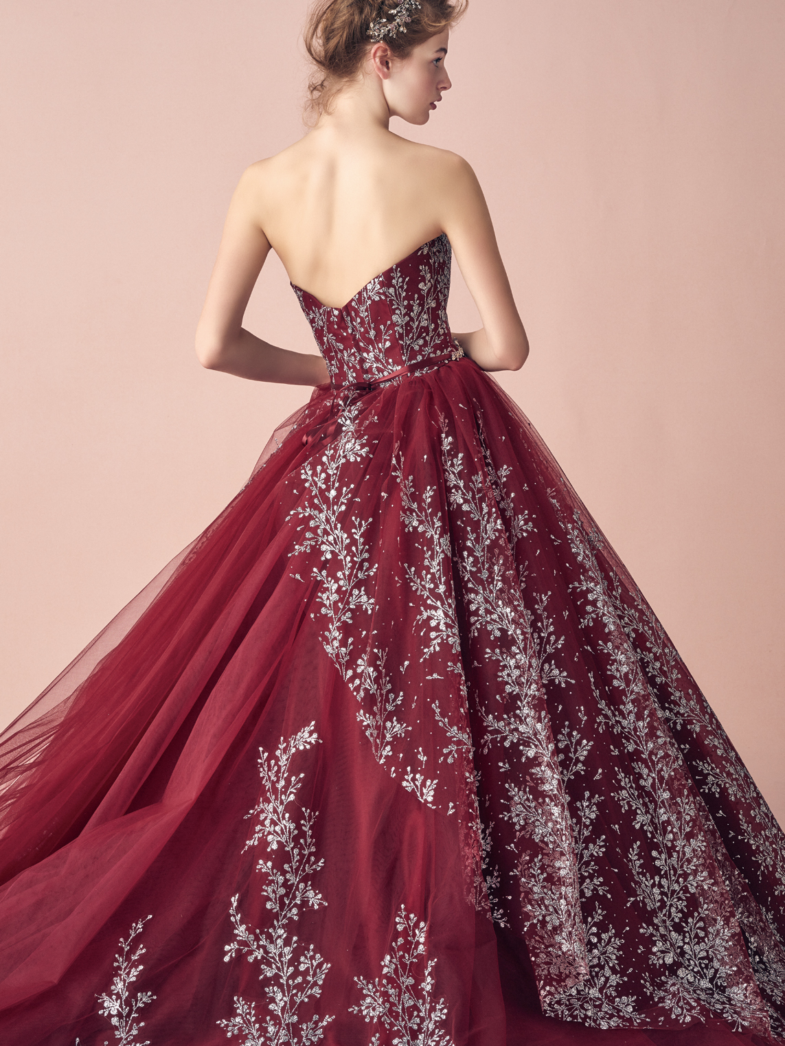 主役ドレスはレディライクなボルドーで決まり ボルドーが放つエレガントオーラに、ANTEPRIMAらしいグリッターの輝きをプラスした、主役感ある大人カラードレスです。深みのあるカラーは、グリッターの煌きが映え、落ち着きと華やかさを兼ね備えます。